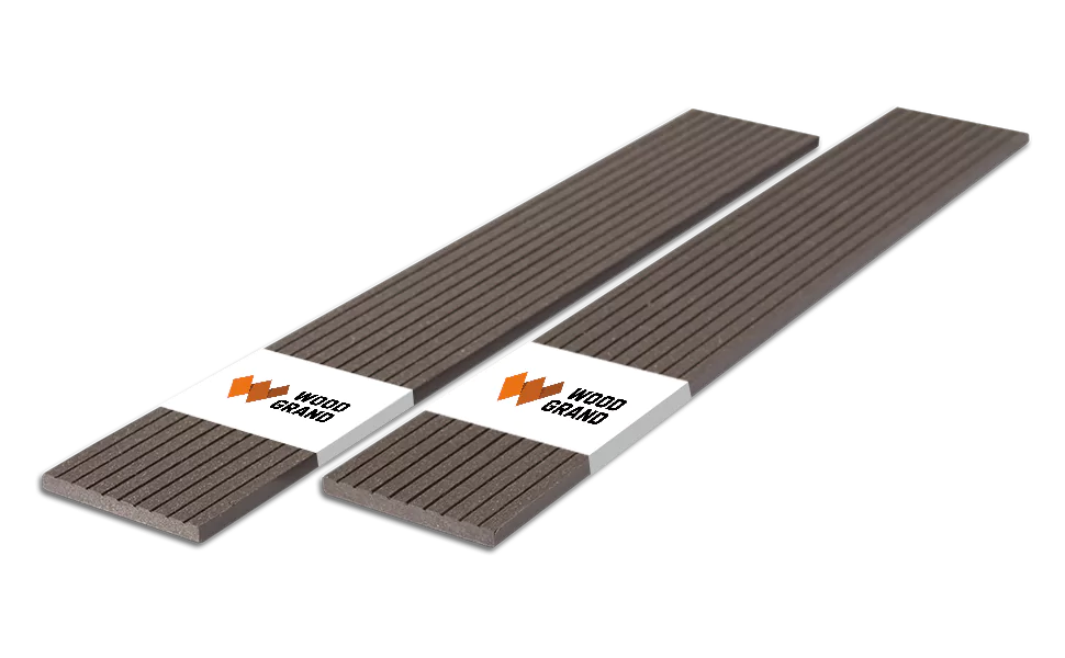 Монтаж уголка из ДПК производится с использованием саморезов, которые крепятся непосредственно к террасной доске или ступени. С помощью этого уголка вы сможете закрыть пространство между стеной и настилом, а также обработать торец террасной доски.